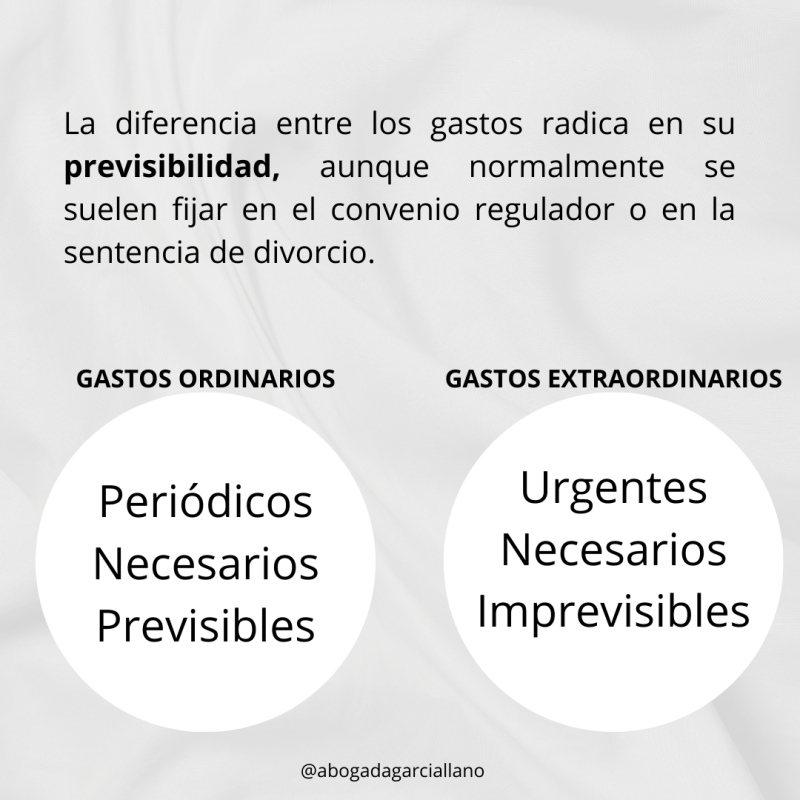 La diferencia entre los gastos ordinarios y extraordinarios radica en su previsibilidad, aunque normalmente se suelen fijar en el convenio regulador o en la sentencia de divorcio.